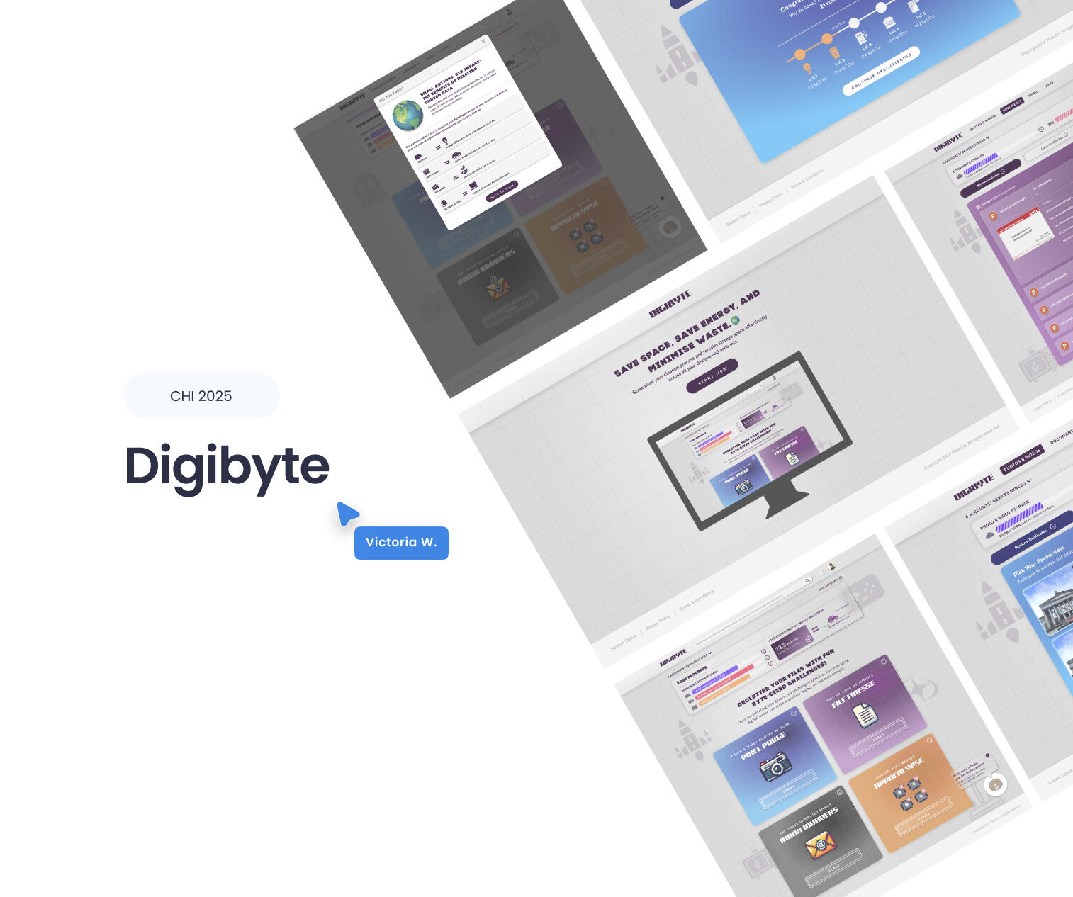 Behavioral Reinforcement: Integrated "Celebration" pop-ups to reward decluttering milestones and reinforce positive habits.Visual Storage Tracking: Files are categorized by type with progress bars that visualize space usage in real-time.Organized File Deletion: Files are easy to delete through the system categorizing and filtering files that are taking up unnecessary space. Users can double-check the selection before simply pressing delete. There are undo options built in for mistakes."Diggy" AI Assistant: A chatbot that automates complex decluttering tasks through simple conversational commands.Gamified Impact: Deleting files unlocks milestones that translate "megabytes saved" into tangible environmental wins, reinforcing positive habits.