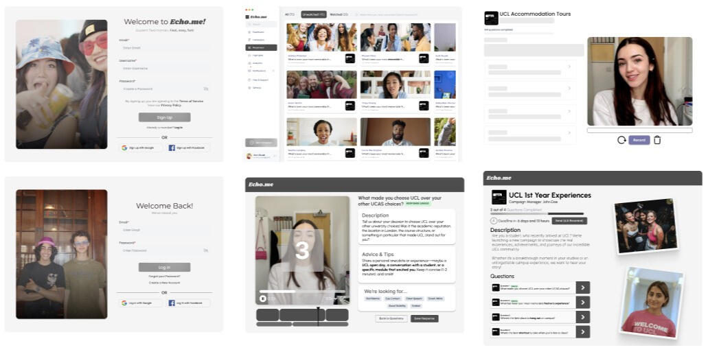 Higher education marketing relies on authentic storytelling, yet gathering User-Generated Content (UGC) is logistically challenging. Institutions must coordinate with a diverse group of global students and alumni, leading to high costs and friction when trying to source and transfer video assets.The Design Solution: Used by institutions across the UK and USA, Eccho provides an AI-powered workflow to collect real video testimonials quickly, easily, and at a fraction of the cost of traditional production.