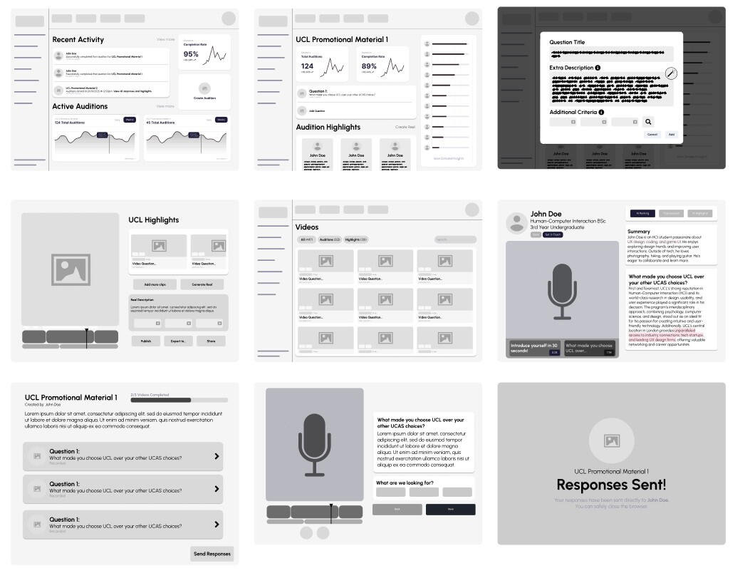 Our goal was to design a barrier-free upload workflow that requires no account creation for contributors, maximising student participation. Students should access a seamless, high-quality video recorder without live co-ordination or third-party software.We considered two distinct interfaces within the app for two opposing personas:The Admin (Campaign Manager):Organizes the marketing campaign and prompts.The Student (Respondent): Receives the link and records their video response.A comprehensive user flow outlines the response collection process, split into five actionable stages to ensure no friction points in the user's journey.
